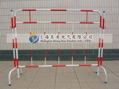 安全圍欄0.8×1.6m高強度絕緣材料制作;紅白相間有警示作用;底部配兩支鑄鐵支架/叉式支架/預(yù)埋式地樁(其它或自由選擇),安全穩(wěn)固, 使用方便。